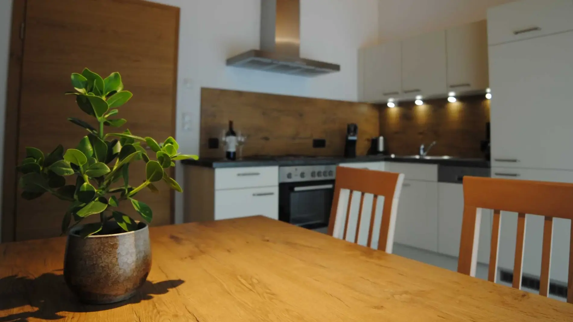 NEUES Appartement mit 2 Doppelzimmer mit jeweils einem Badezimmer mit Dusche/WC, voll ausgestattete Wohnküche (Cerankochfeld, Backrohr, Kühlschrank mit Gefrierfach, Filter-Kaffeemaschine, Geschirrspüler uvm.) und gemütlichem Essbereich mit Flat-TV, Zugang zum Ostbalkon und Westbalkon mit herrlicher Aussicht auf Sölden. Größe ca.60 m².